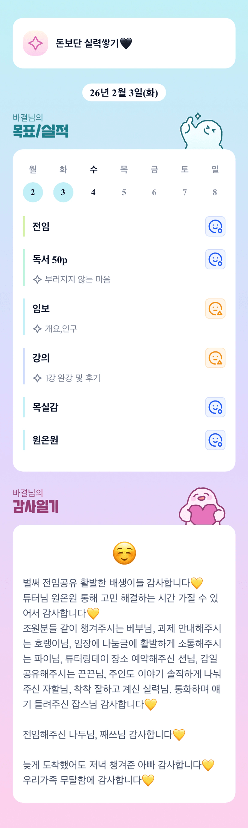 감사함이 넘치는 감사일기네요 조장님!따땃해집니다♡