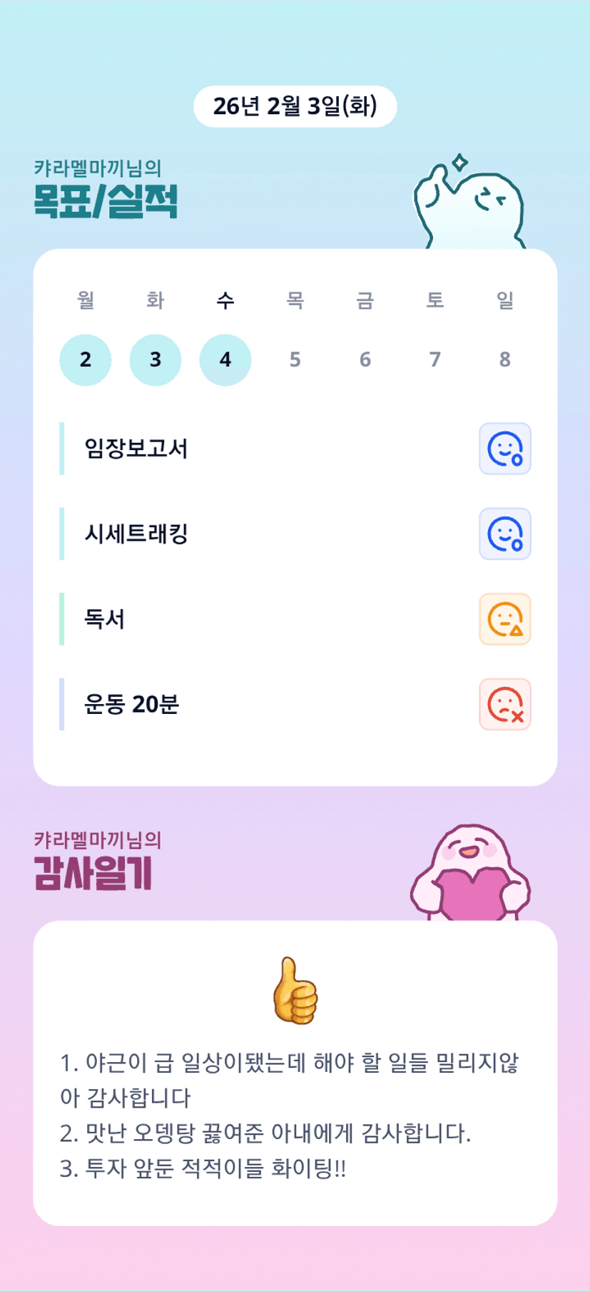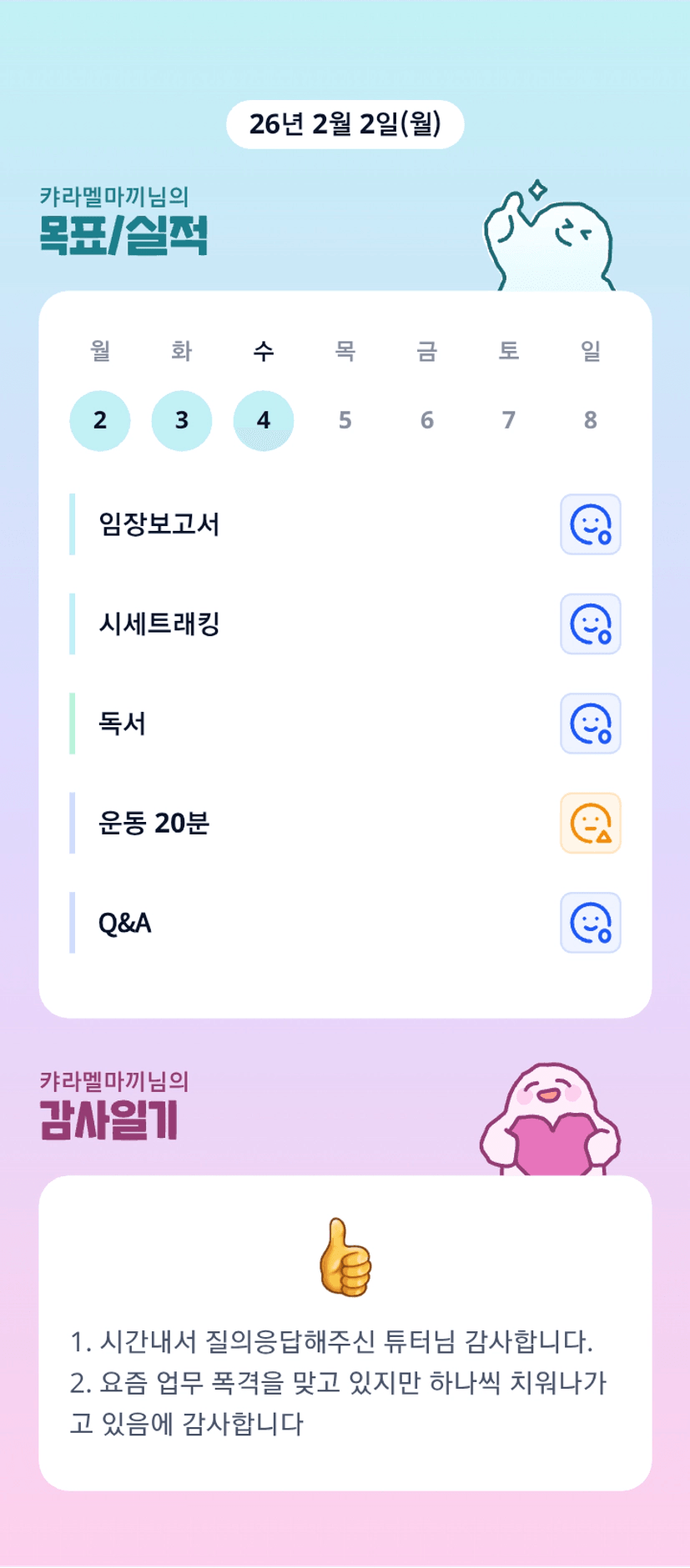 마끼님 어제는 야근 안하셨나요? 요즘 업무 때문에 힘든 나날이군요 ㅠㅠ 루틴왕 힘내랏~~♡