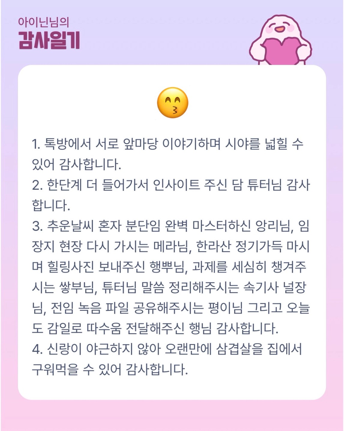 꺄 삼겹살 맛있으셨나요 ㅎㅎ 오늘도 화이팅입니당 ㅎㅎ