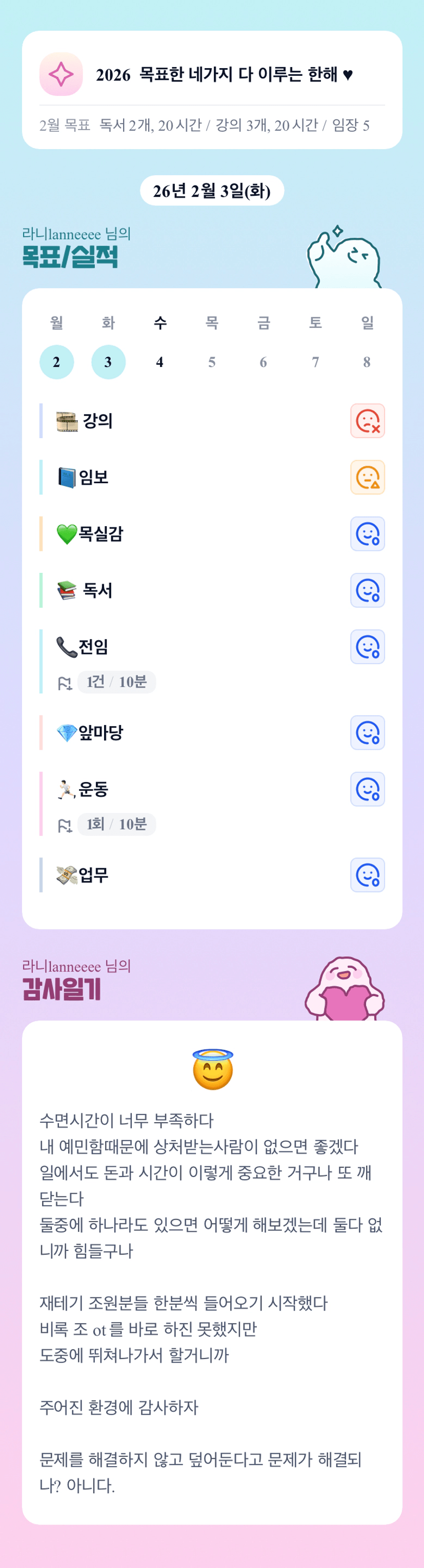 라니님~~~ 잠은 자야하는데ㅜㅜㅜㅜ 라니님이 예민하다니... 믿기지 않음요.... 건강 잘 지키시면서 화이팅해야합니다!!!! 제가 늘 응원하는거알쥬???????????????