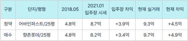 * 세금/이자/중개비 등의 비용은 제외한 단순 시세차익 기준입니다.