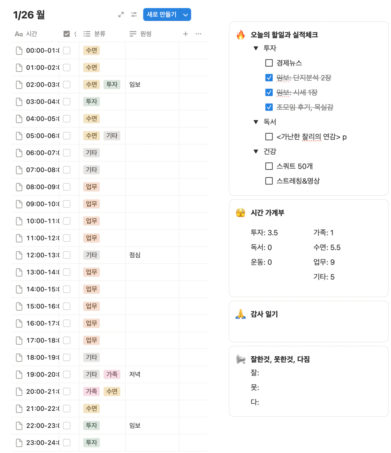 [라비아] 목실감+시간 노션 템플릿 양식 공유