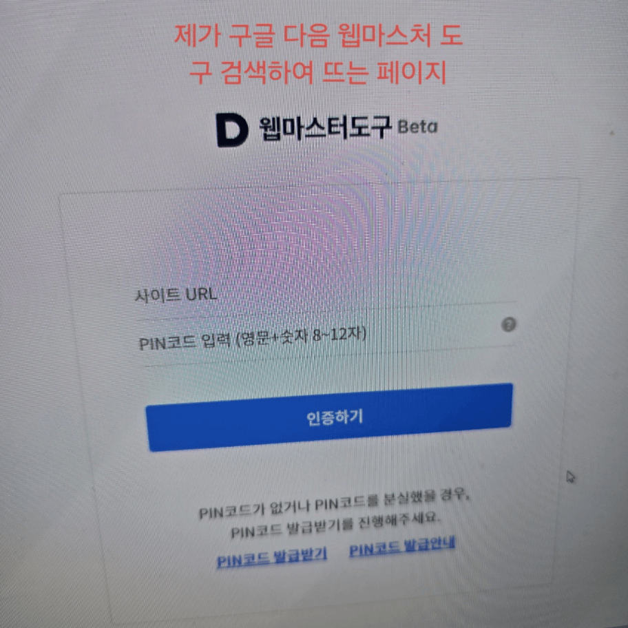 구글에 ‘다음 웹마스터 도구’ 를 검색 후 클릭하여 링크 들어갔을때,