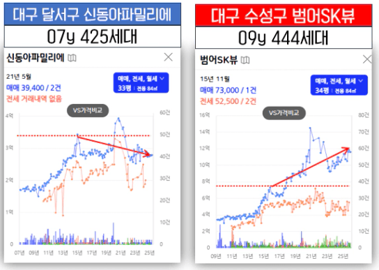 대구에서 비슷한 조건의 두 단지를 비교해 볼게요.