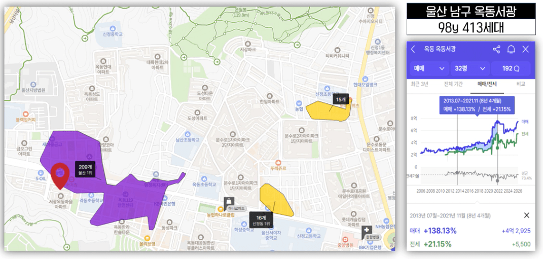 비슷한 연식과 세대수를 가진 두 단지의