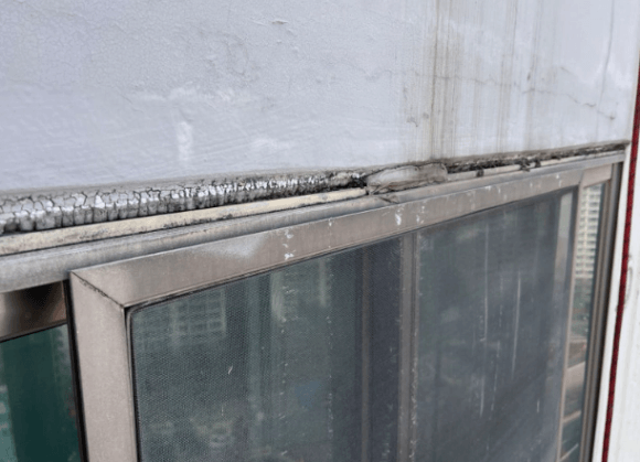 외부 창틀의 실리콘이 오래되어 찢어지거나 삭아서 벌어진 틈으로 빗물이 들어와서 누수가 발생할 수 있습니다.