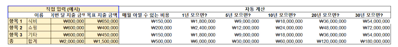 현실적으로 아낄 수 있는 목표 지출 금액을 정해봅시다.