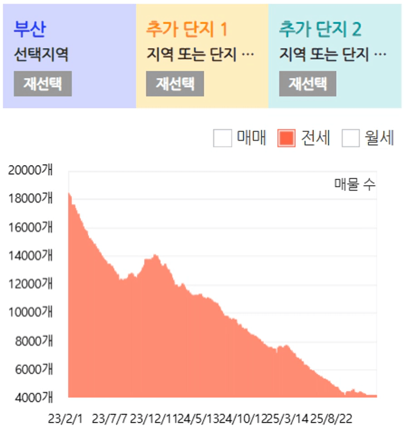 2.부산 지역 전체에 전세 매물수가 4천개 정도로