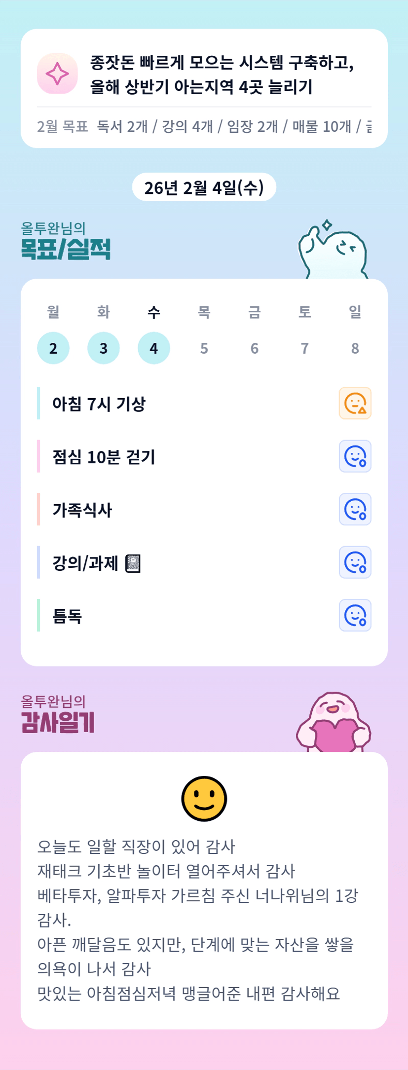 - 아픈 깨달음도 있지만, 단계에 맞는 자산을 쌓을 의욕이 나서 감사합니다