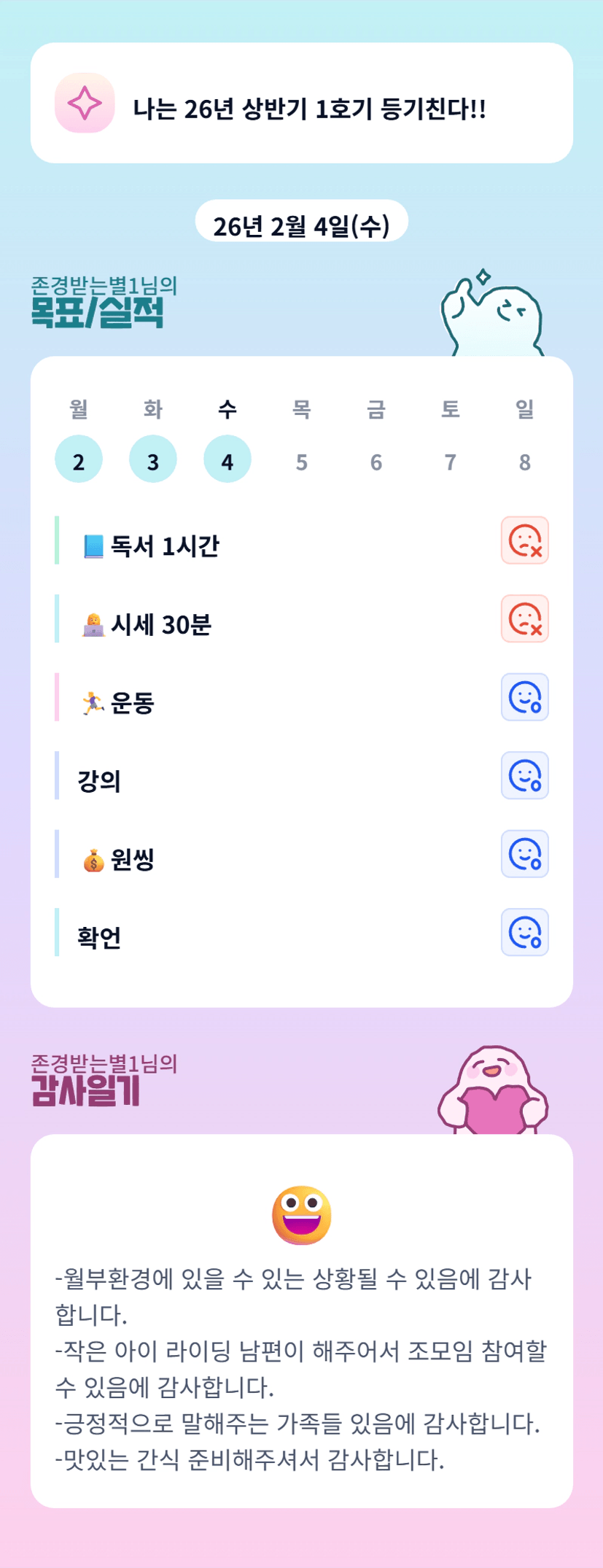 긍정적인 마인드와 자세인 별님 가족들 너무 보기 좋습니다 ^^ 오늘도 즐겁게 하루 시작하시죵!!