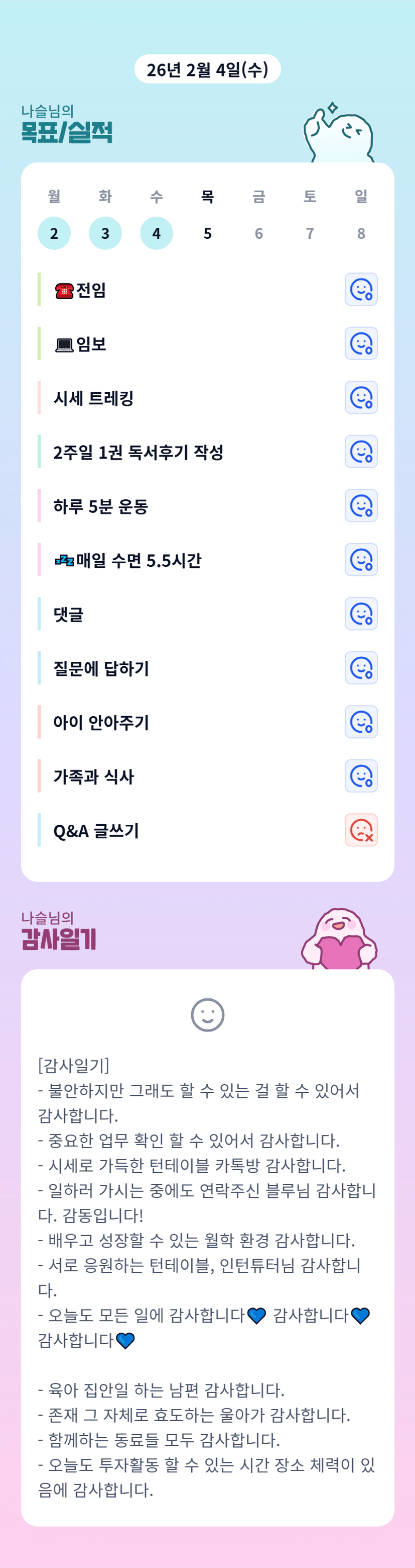 슬님중요한 업무가 생겼군요..ㅜㅜㅜ 지금까지처럼 잘 해결하실겁니다 불안을 행동으로 바꾸고 계시는거라고 생각해요! 어려우면 연락하기 꼬옥~~~!!!