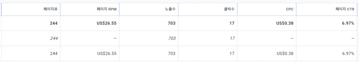 페이지뷰는 20정도 차이는데 클릭수가 왜이렇게 줄었을까...