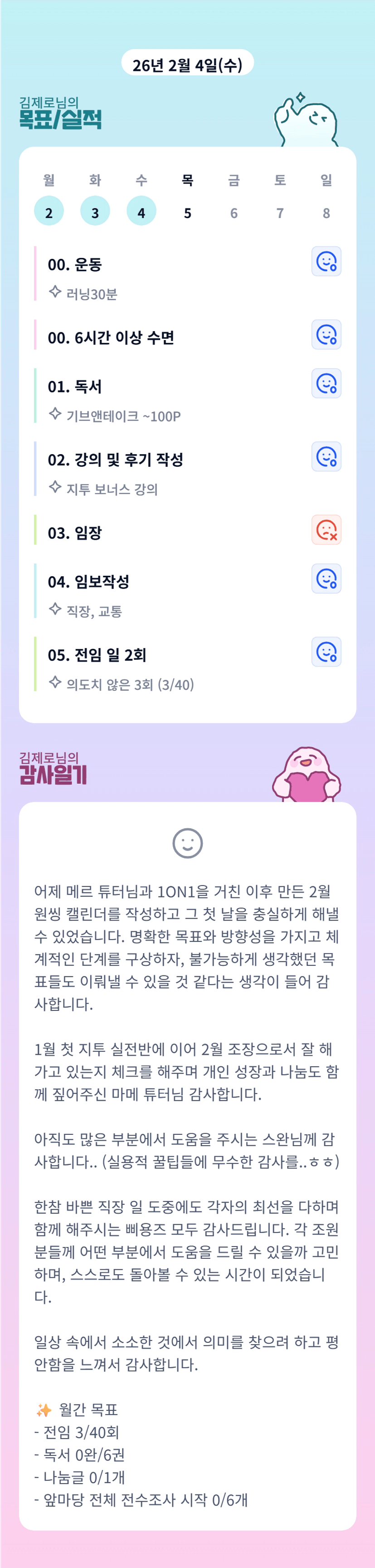 목표대로! 불가능은 없다! 제로조장님 빠이팅💛