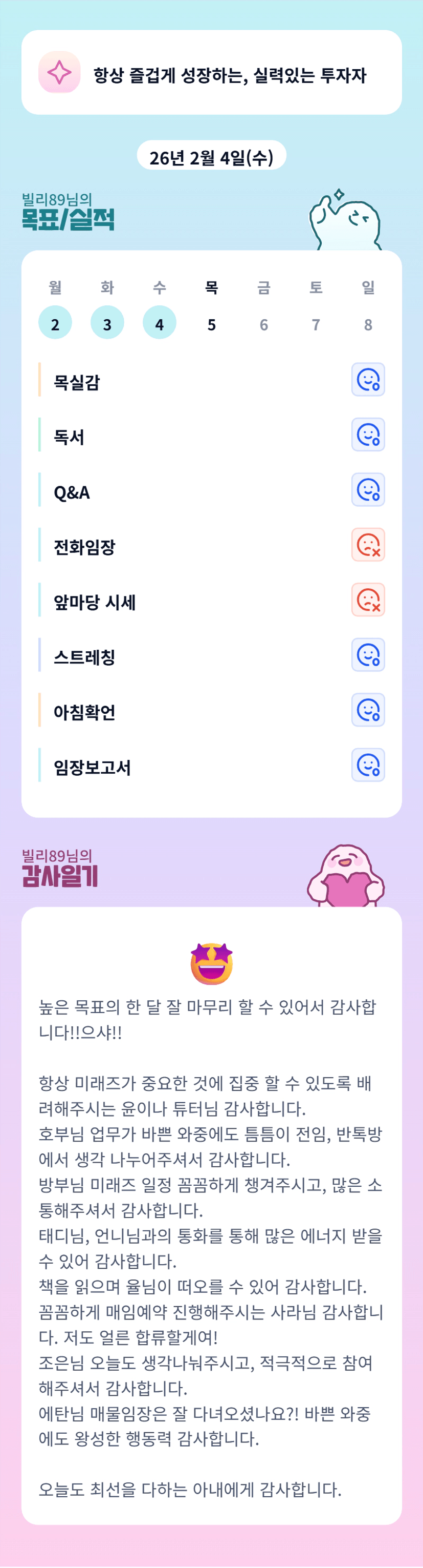 오늘도 한명한명에게 감사함을 전하시는 반장님. 1월달 정말 고생하셨어요. 남은 학교도 화이팅!!!