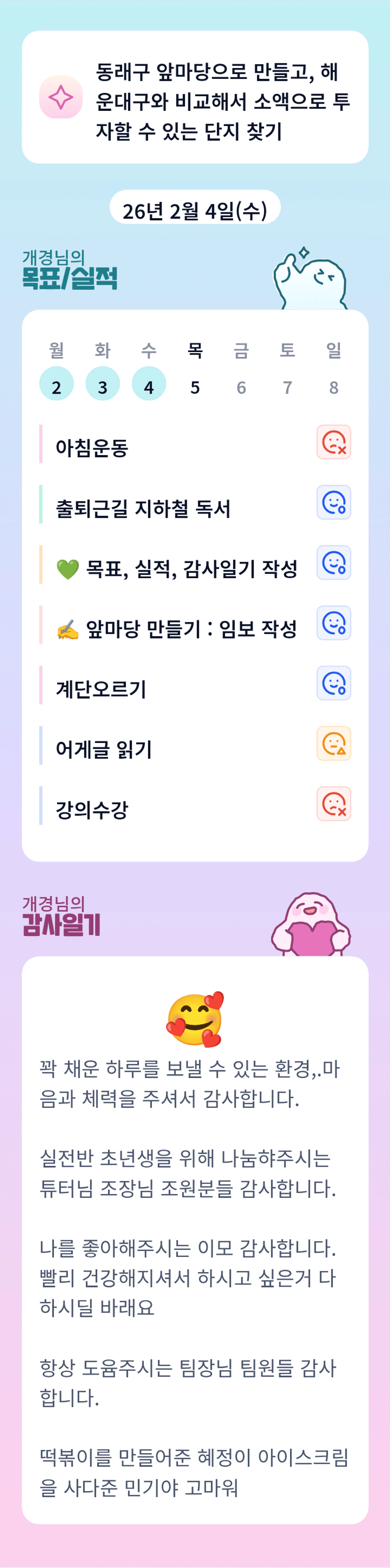 개경님 정말 풍성한 하루 보내셨네요!!!♡♡♡ 오늘도 화이팅입니다!