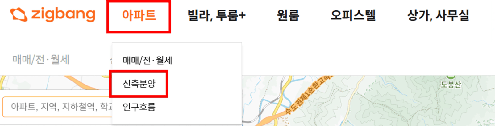 1) 직방 → 아파트 → 신축분양