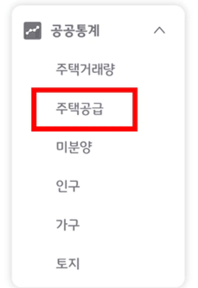 1) KB부동산 - 데이터허브 홈 - 공공통계 - 주택공급