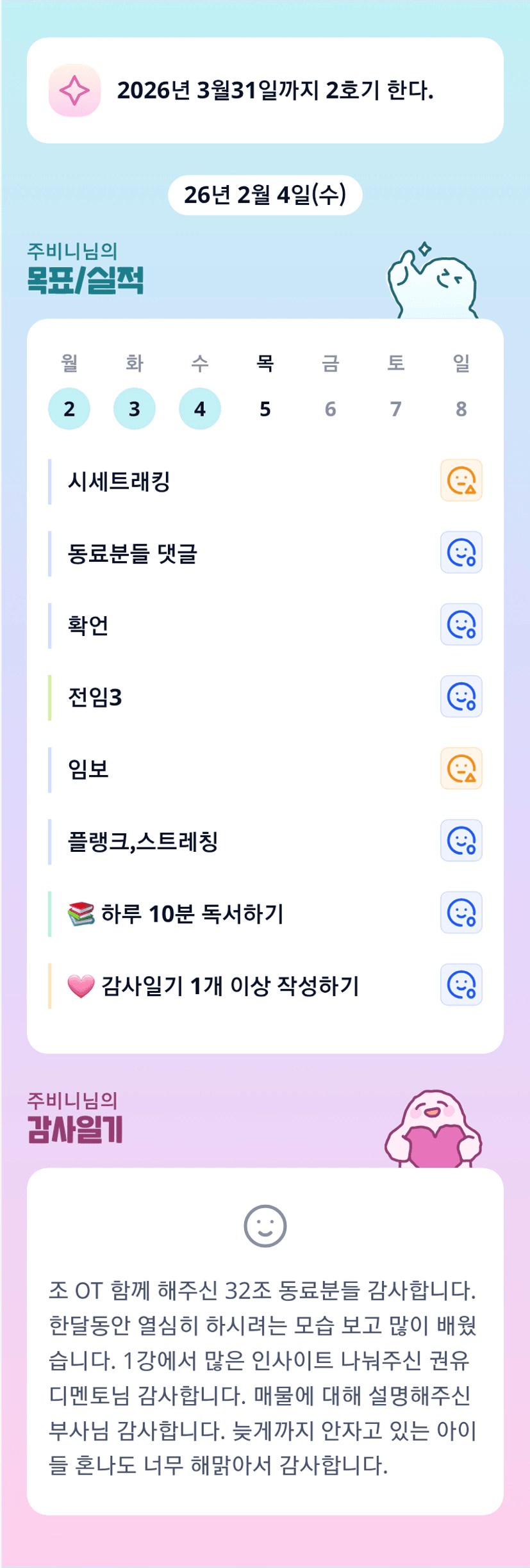 아직 제대로 혼을 안내신것같네요 ㅋㅋㅋ 전임부터 조OT까지 수고 많으셨습니다 주비니 조장님 ^^