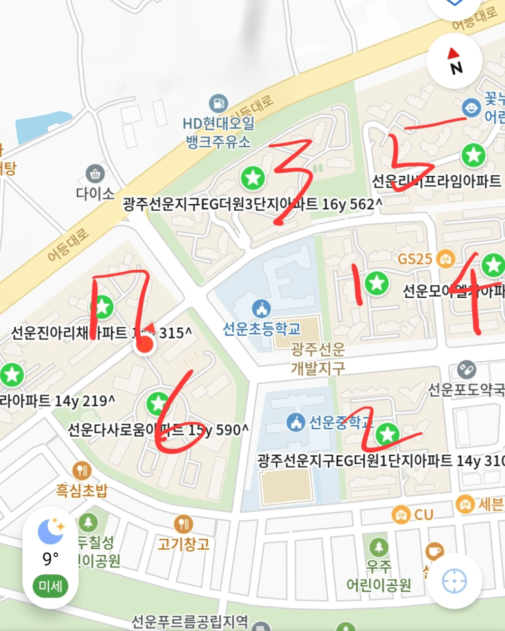 예시로 광주광역시 광산구에서 단지임장 시 기록했던 자료를 보여드릴게요.
