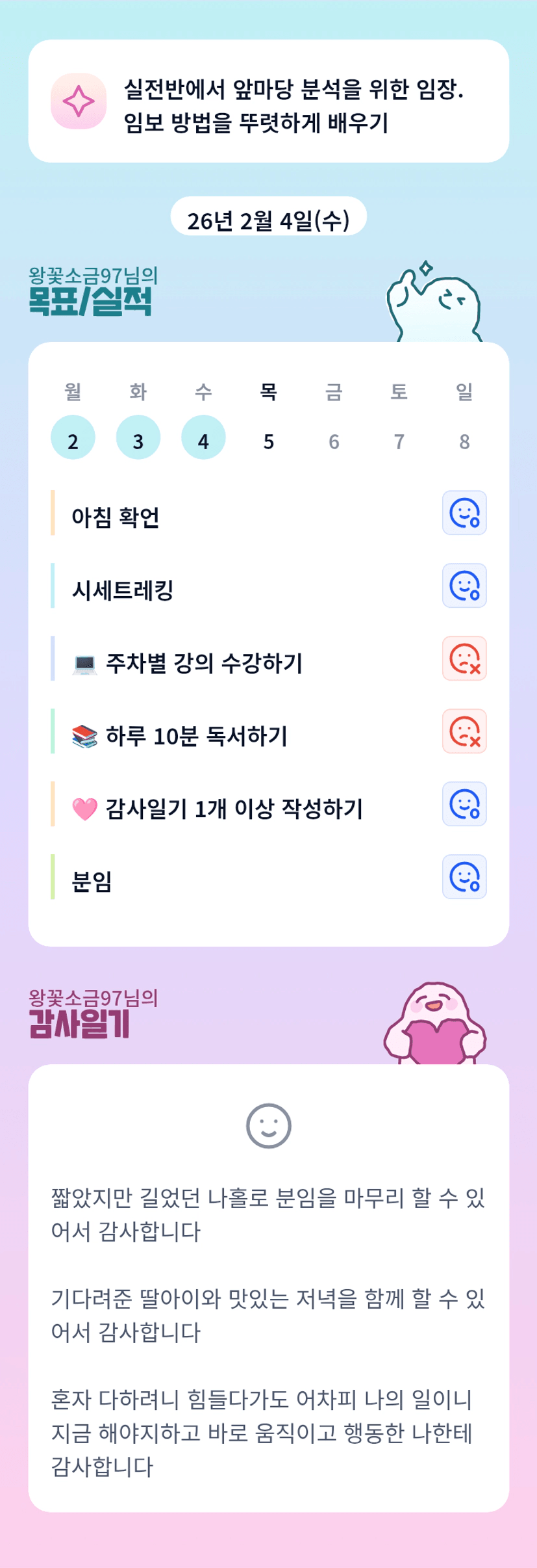 나홀로분임 끝까지 완료하신 것 대단하십니다! 이번 주말엔 함께해요🧡