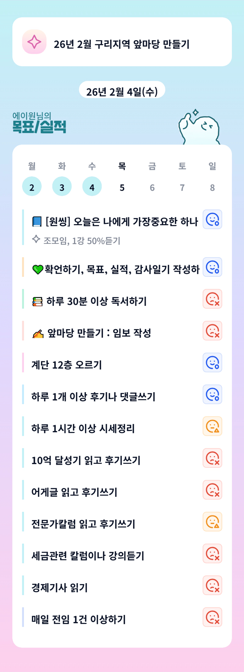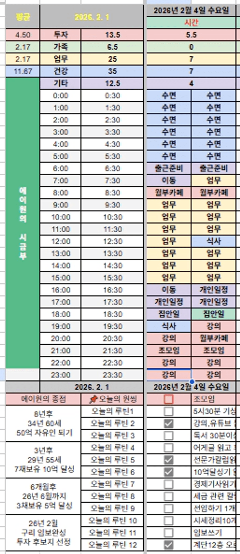 에이원님 파워 J가 분명합니다!!! 수면 시간이 너무 적으신 것 같아 조금 걱정되지만, 열심히 하시는 에이원님을 보며 정말 많이 배웁니다 ^^! 오늘 하루도 빠이팅입니다:)ㅎㅎㅎ