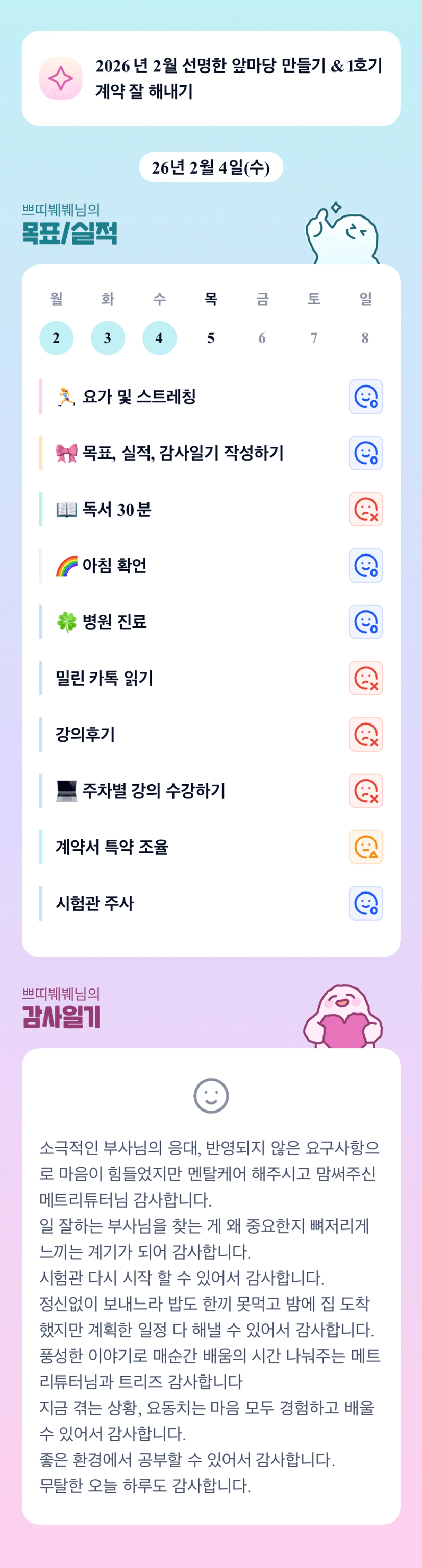 쁘띠님은 항상 해낸다!!! 할 수 있다!!! 잘 하고 있어요~