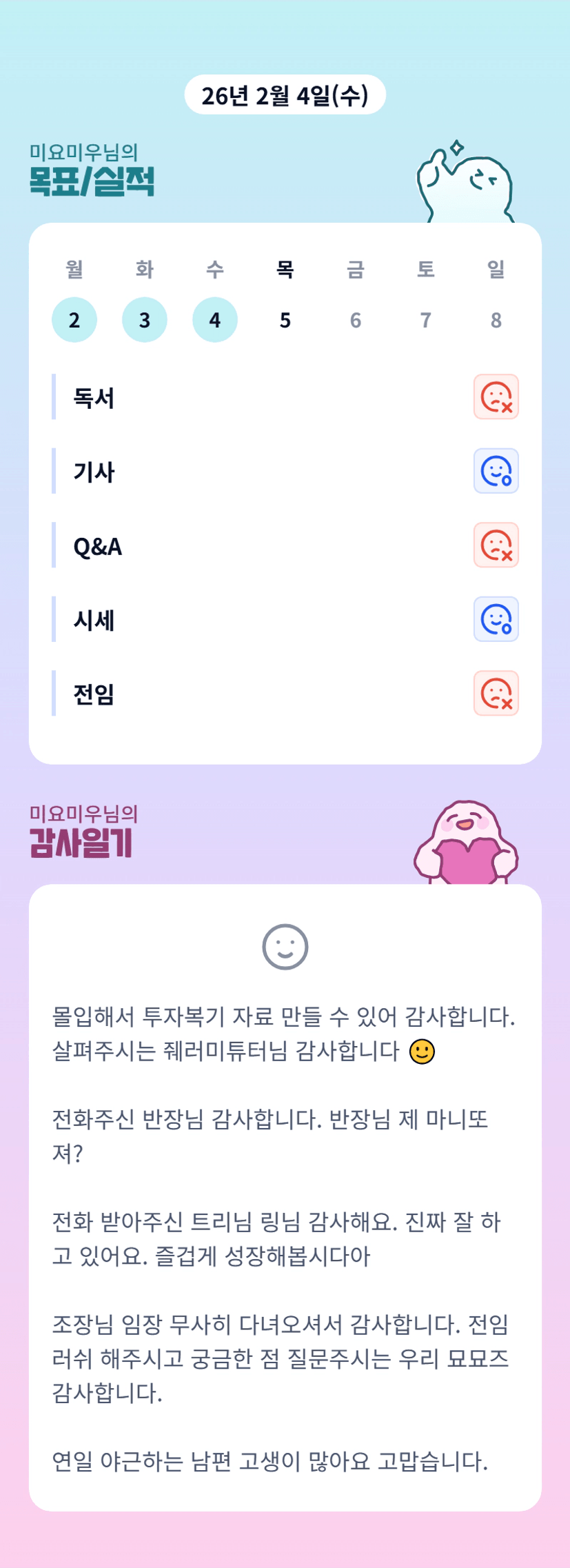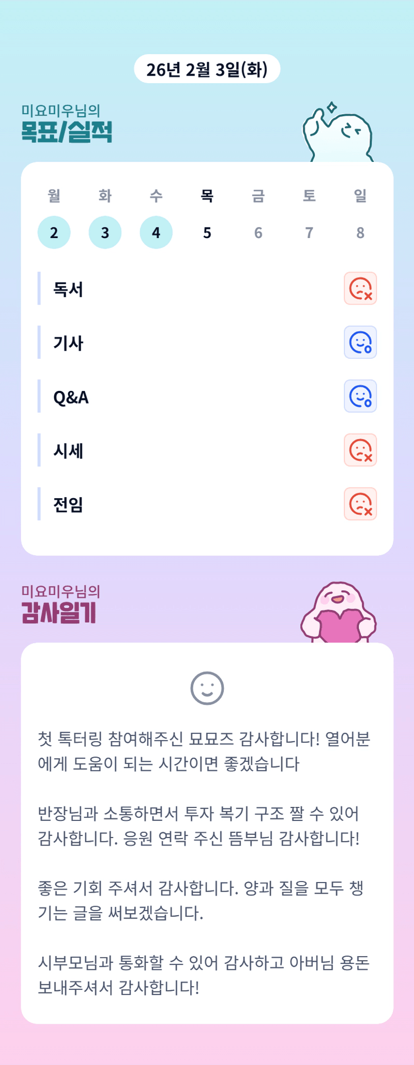 튜터님 톡터링으로 풍성한인사이트 얻었습니다♡ 매일 감사합니다🥰