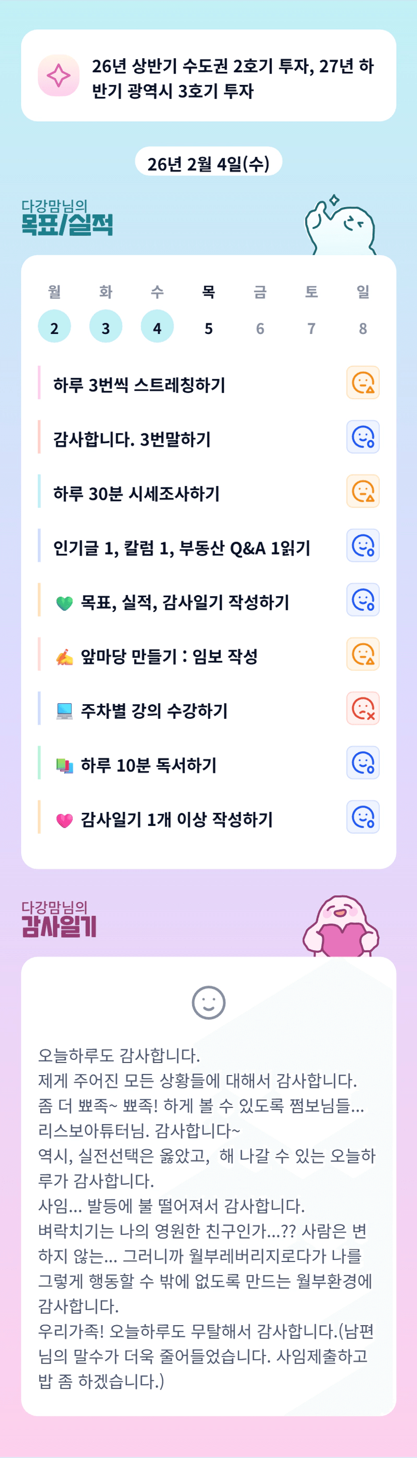 맘님 촘촘한 목표 체고~!! 저도 어제 빨래 좀 하고.. 집 좀 돌보고.. ㅋㅋㅋㅋㅋ 오늘도 화이팅💗 악!!!!!