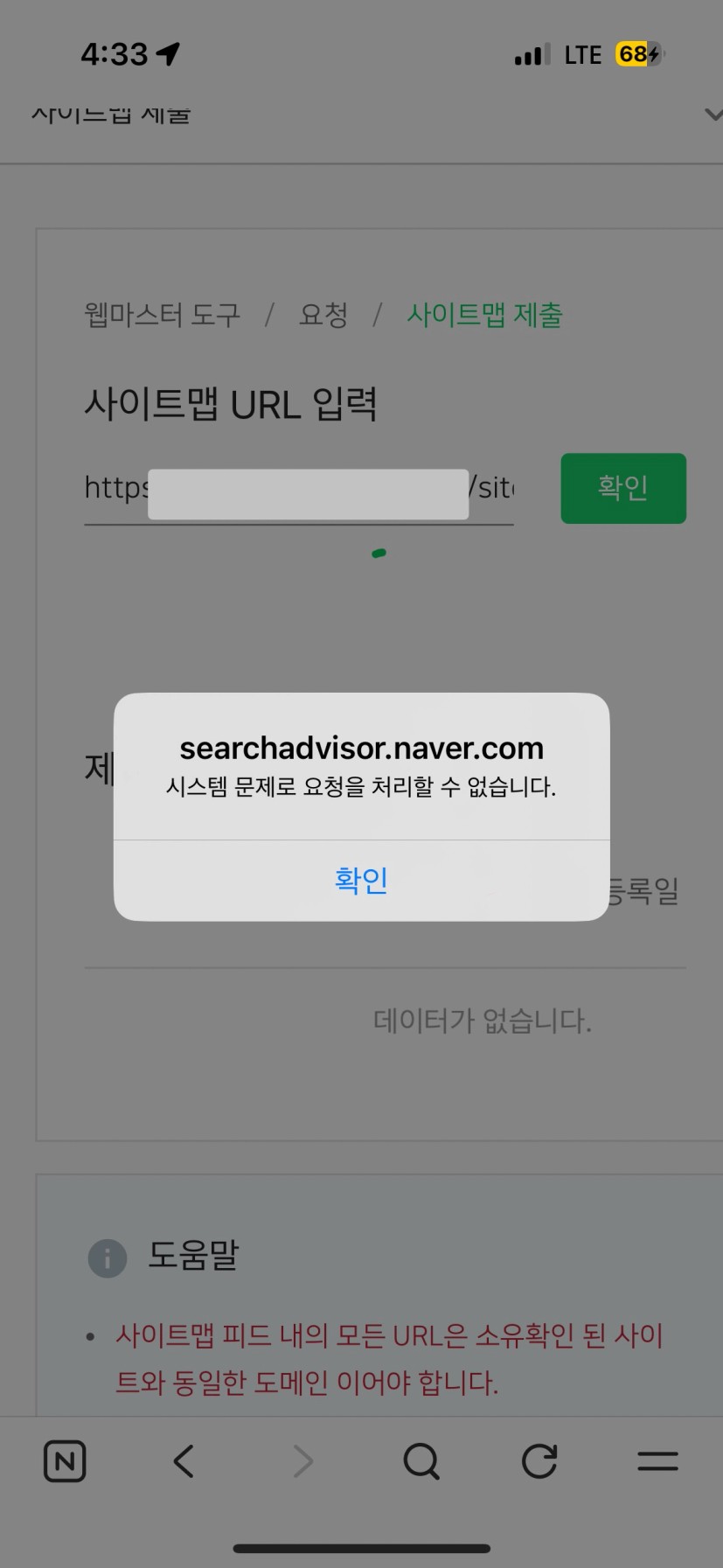 구름뭉뭉님 안녕하세요! 저도 지금 같은 현상이 계속 있어서 찾아보려고 들어오니 구름뭉뭉님과 같이 계속 사이트맵 등록시에 시스템 문제로 요청을 처리할 수 없다고 뜨네요 ㅠ 아마 네이버 문제이지 않을까 싶은데... 좀 기다렸다가 다시 해보면 될 수도 있지 않을까 싶습니다!