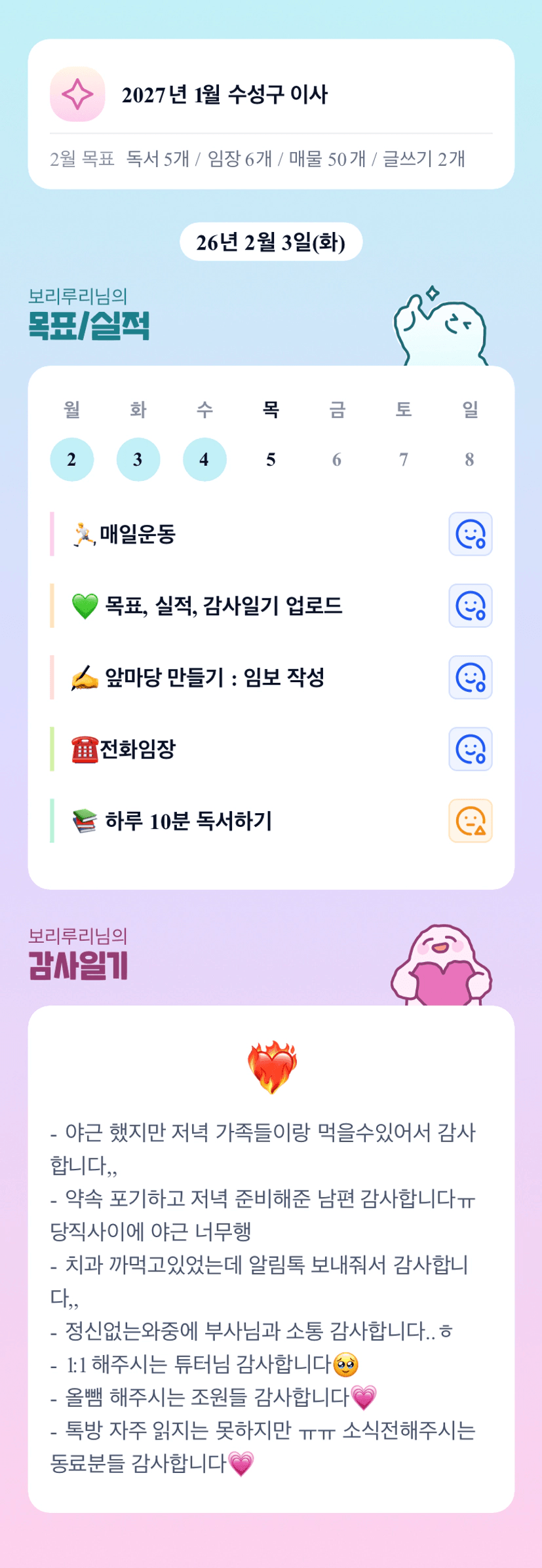 보리님 바쁘게 하루 보내시고 계시는군요. 식사 잘 챙겨 드시고 항상 응원하니까 힘내세요!! ^^