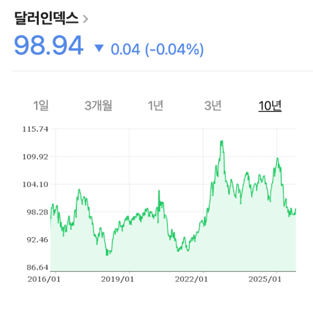 최근 달러인덱스는 정상화 되었다. 즉 달러가치가 전세계적으로 강한 상황은 아니고, 보통 수준이다. 즉 명백히 강달러는 아니라는 소리다.