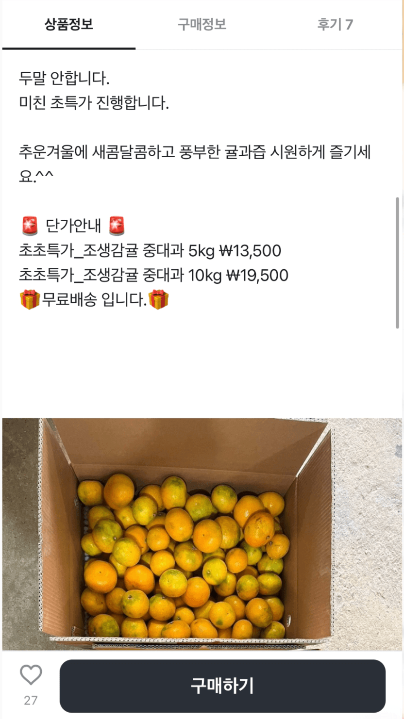 나중에 시즌 끝물에 들어갈 때, 그냥 "귤 팝니다"라고 올리면 안 된다. "