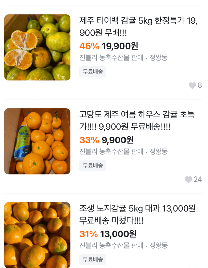 요즘 당근마켓 피드를 보면 아주 가관이다. 너도나도 '귤'을 팔겠다고 난리도 아니다.