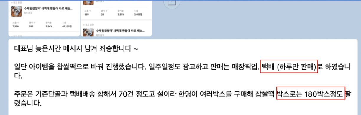 그래서 내가 상품을 '수제 찹쌀떡'으로 바꾸라고 했다. 결과는 어땠을까?