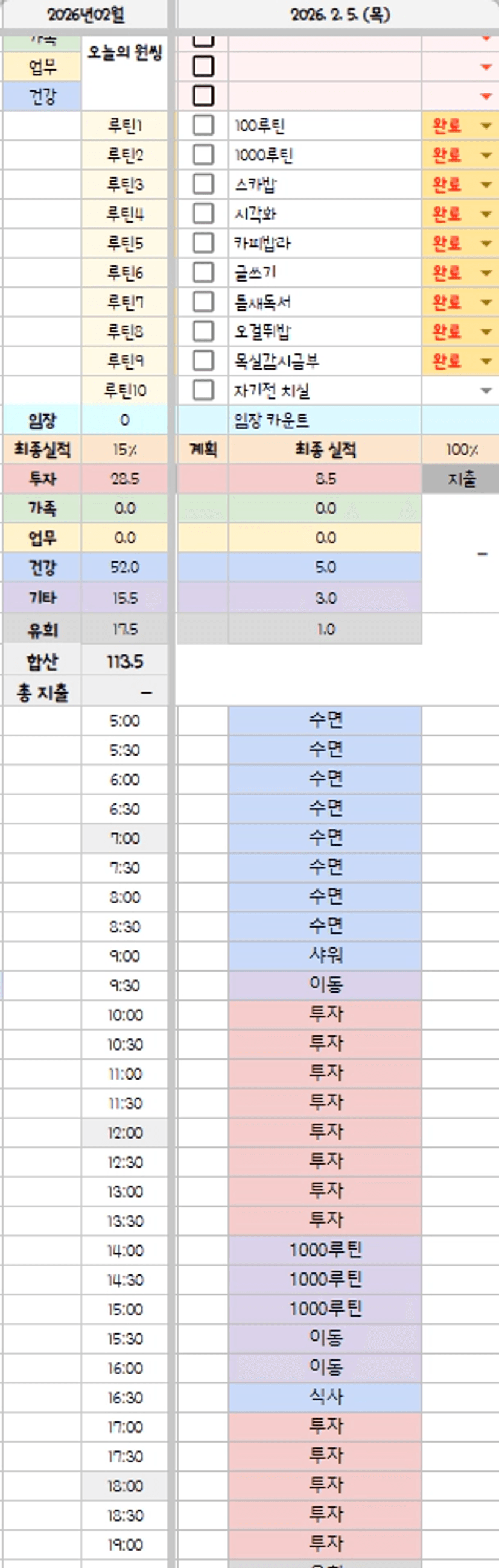 - 최소루틴과 집에와서 반복하는 작업이지만 필요한 작업을 한 점