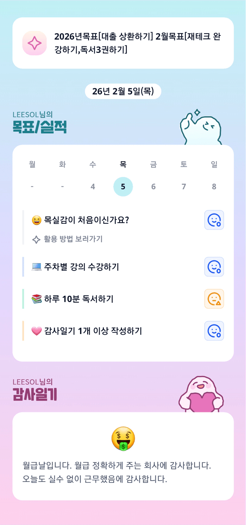 LEESOL님! 처음이셨을텐데 작성해주셔서 감사합니다! 이번 한달 잘 부탁드립니다! :)