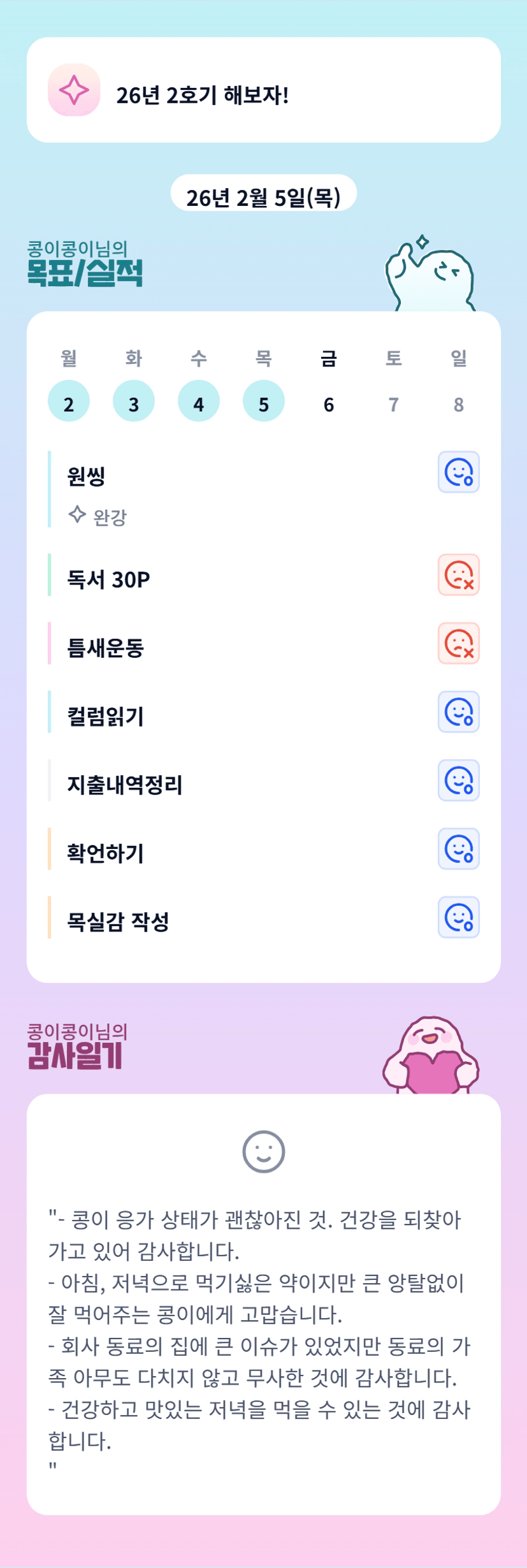 콩이님 목실감 보니 가족들이 무탈하게 지내는 것 자체로 정말 넘나 다행이고 감사한 일임을 새삼 느낍니다.