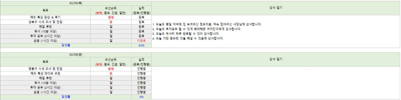 🌻2/6 목표, 2/5 실적 & 감사일기