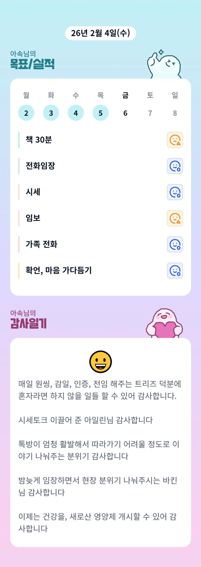 트리즈 뭔가 반짝반짝 느낌이라 너무 귀엽네요ㅎㅎ 건강 챙기시구 오늘도 팟팅입니다 조장님🍀