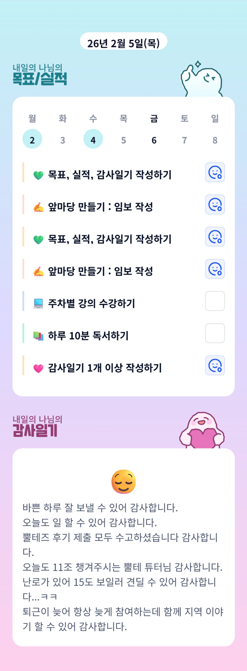 내나님 과제 잘 챙겨주셔서 감사합니다!! 오늘은 드디어 사임 제출 dday!!! 15도 넘 추운거 아닙니꽈.... 건강 잘 챙기세요!!!