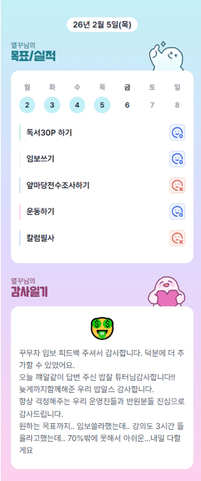 강의도 듣는 꾸님 미쳤써요. 베리굿. ㅜㅜ 임보 70장 맞춰보자!!!! 운영진따라가즈아아아아 ㅎㅎㅎㅎ 오늘의 임보 피드백도 너무 감사합니다 꾸님. 많이 배우고 성장 예정입니다!!!!!!!! 딱 기다려라아아아아ㅡ아앆