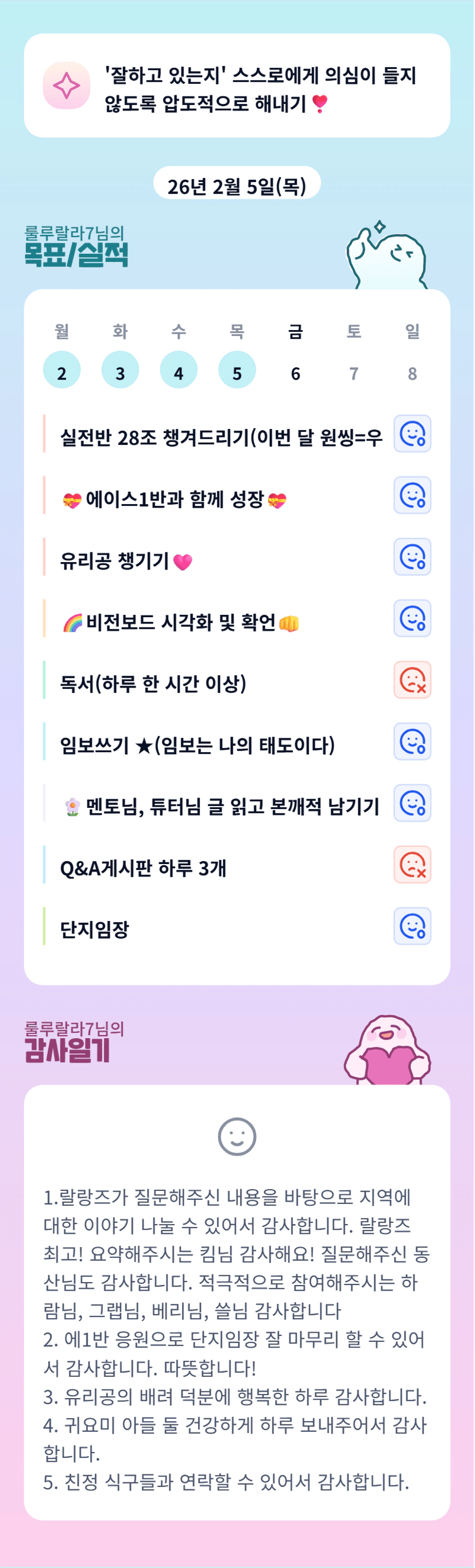 저희의 밑바닥에 있던 생각까지 이끌어내신 튜터님이 더 쵝오!! 바쁜시간 쪼개 시간 톡터링에 진심을 쏟아주신 튜터님 정말 감사합니다❣️