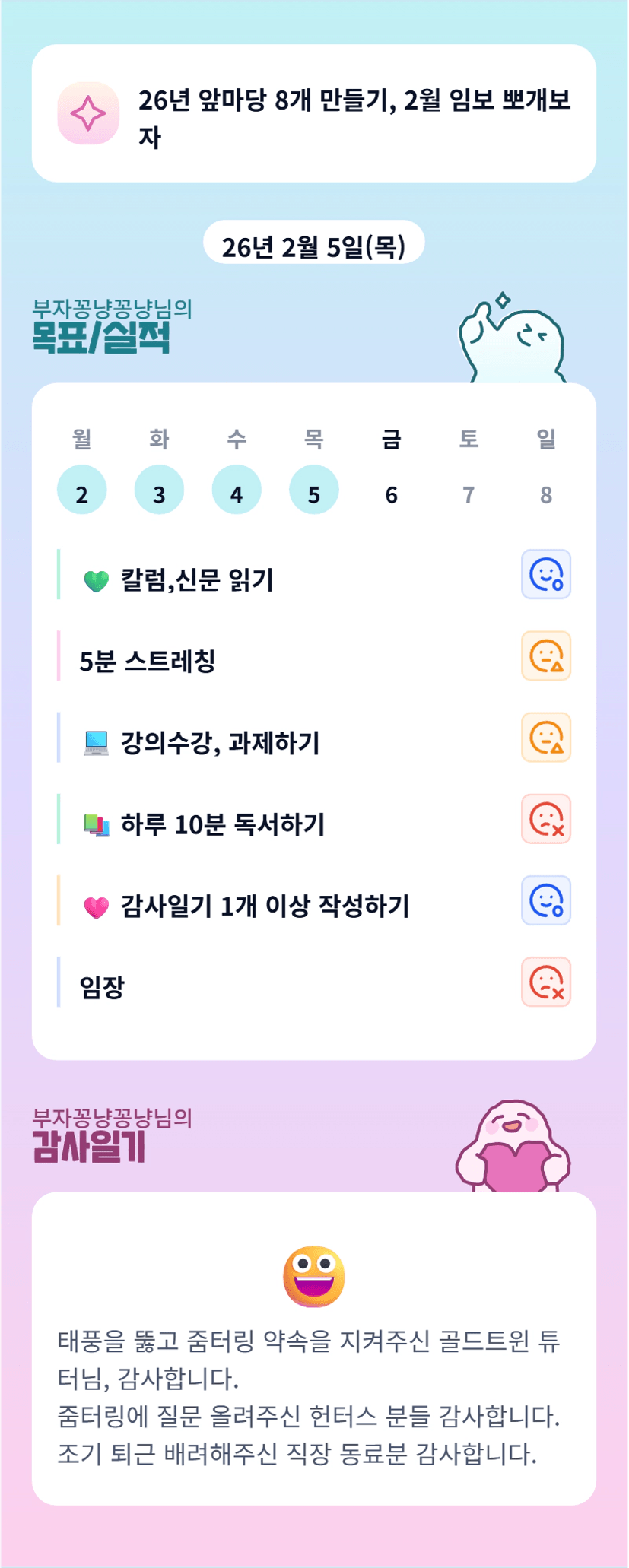 꽁냥님 마음건강 몸건강챙기시면서! 응원합니다 화이팅^^
