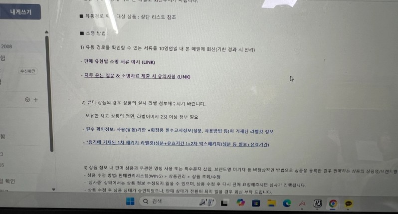 쿠팡에서 유통경로확인하라는 메일이 왔어요