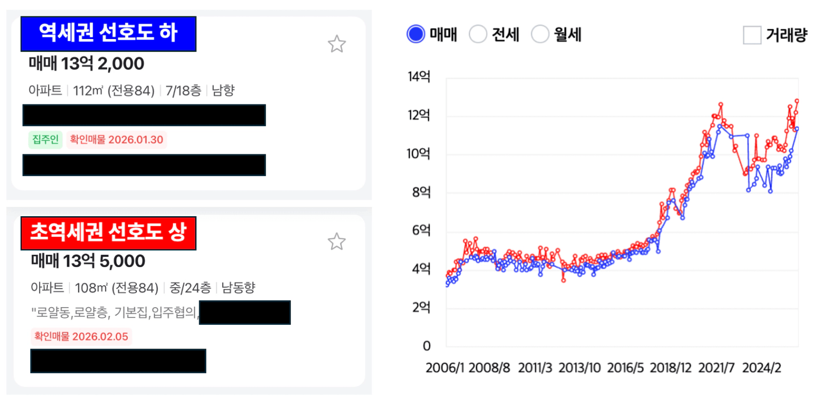 반면에, 초역세권 단지도 높은 호가이지만