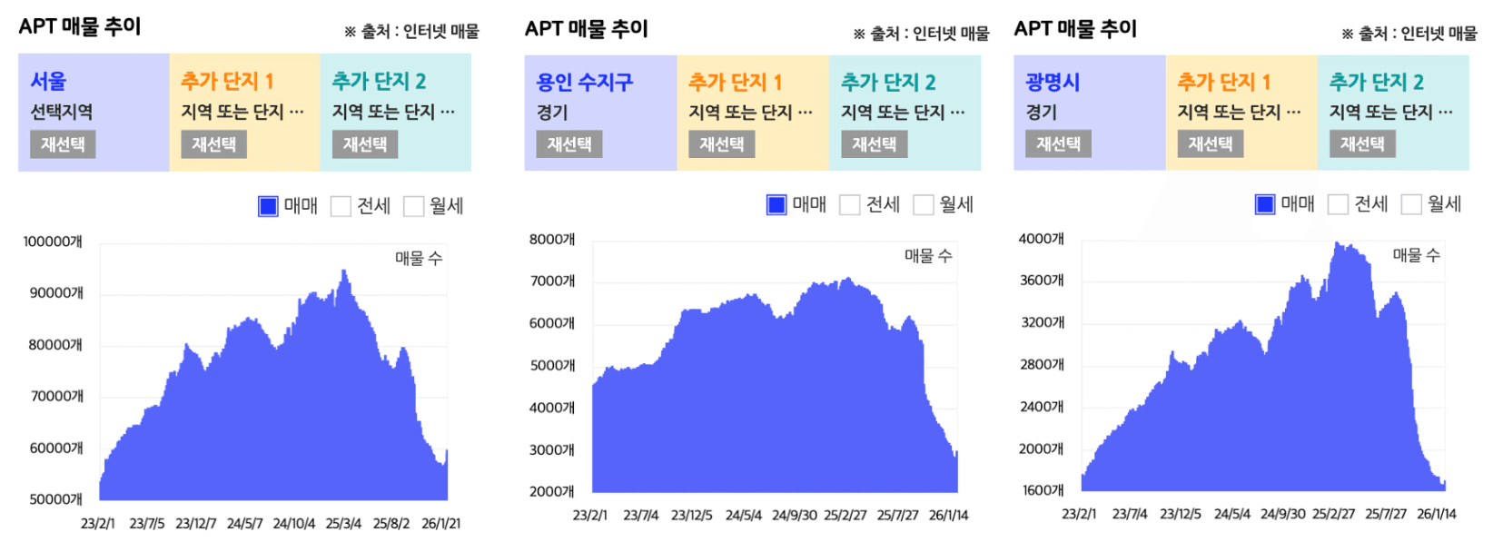 매물이 1,2개 밖에 없는 경우도 꽤나 흔합니다.