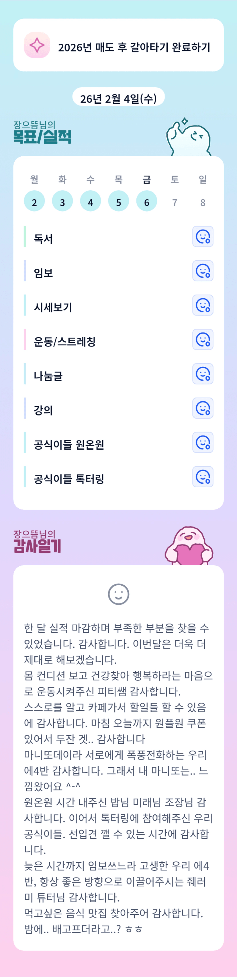 와앙 마니또데이 뭔가 두근두근해요 튜터님🩷 건강 잘챙기셔야해욧🥹 항상 감사해요🩷🩷🩷