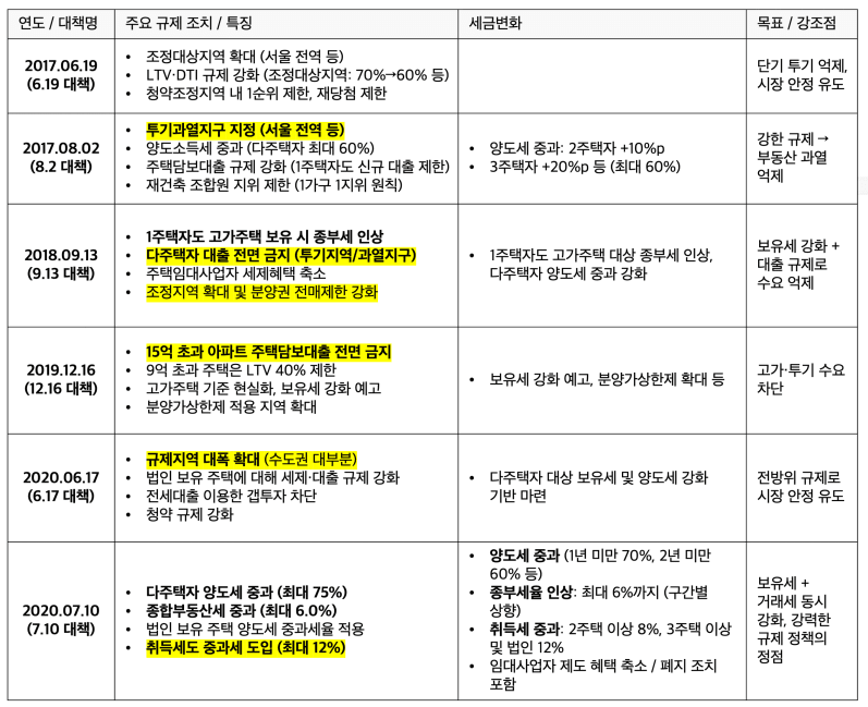 특히 2020년 7월 대책 이후에는 매물이 급격히 잠기면서 가격이 크게 요동치며 상승한 것도 볼 수 있습니다.