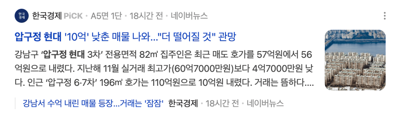 기사에서는 직전 실거래가가 117억인데 110억으로 호가가 내려갔다고 하지만