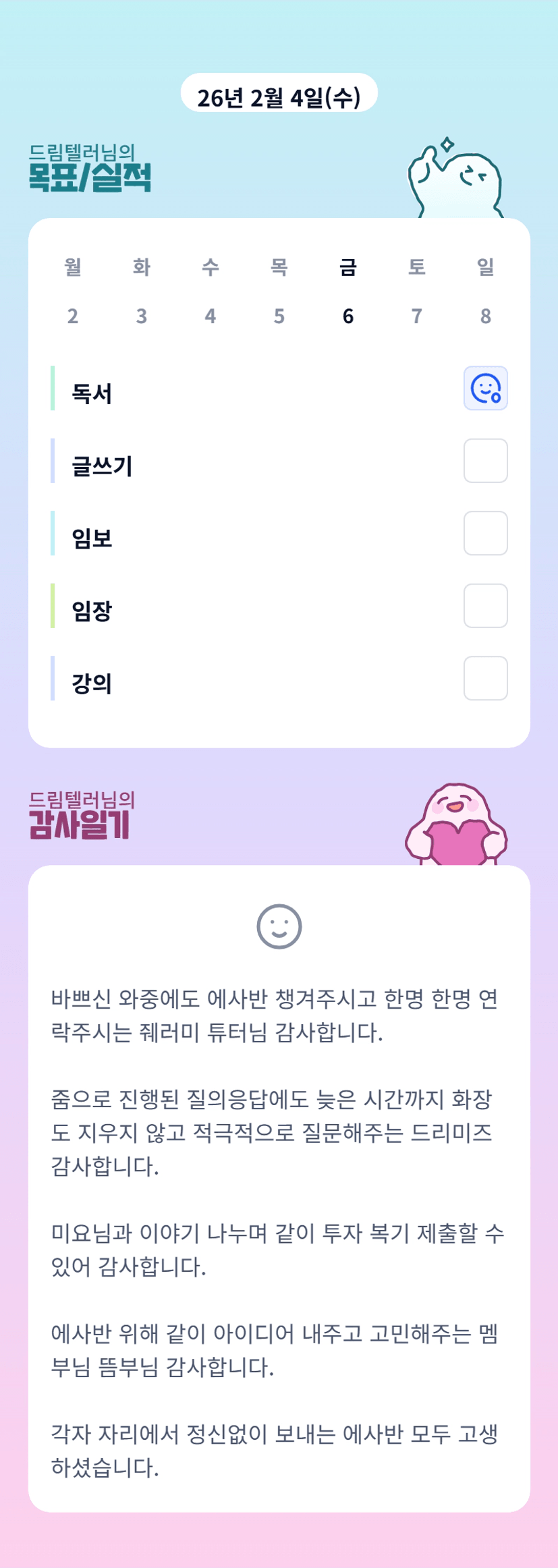 ... 죄송합니다 튜터님. 화장은 지웠읍니다. 예의상 입술은 발랐었는데요. 다음엔 꼭 풀메 대기 하고 있겠읍니다 🫡 민낯금지~~~~~~~♡